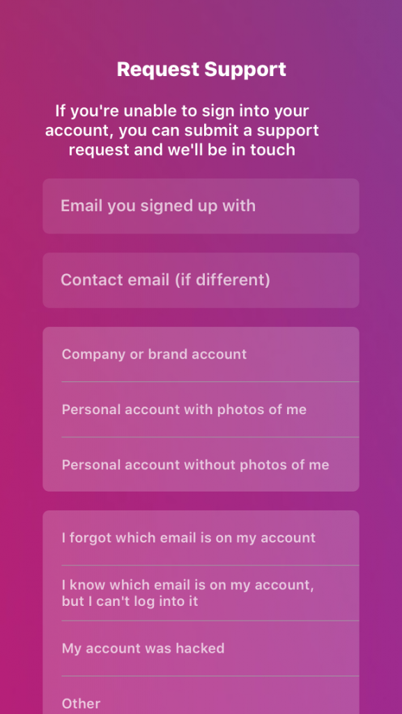 I am still not able to sign in. To my Instagram, I did there form and it’s not working! FIX IT FUCKERBERG!